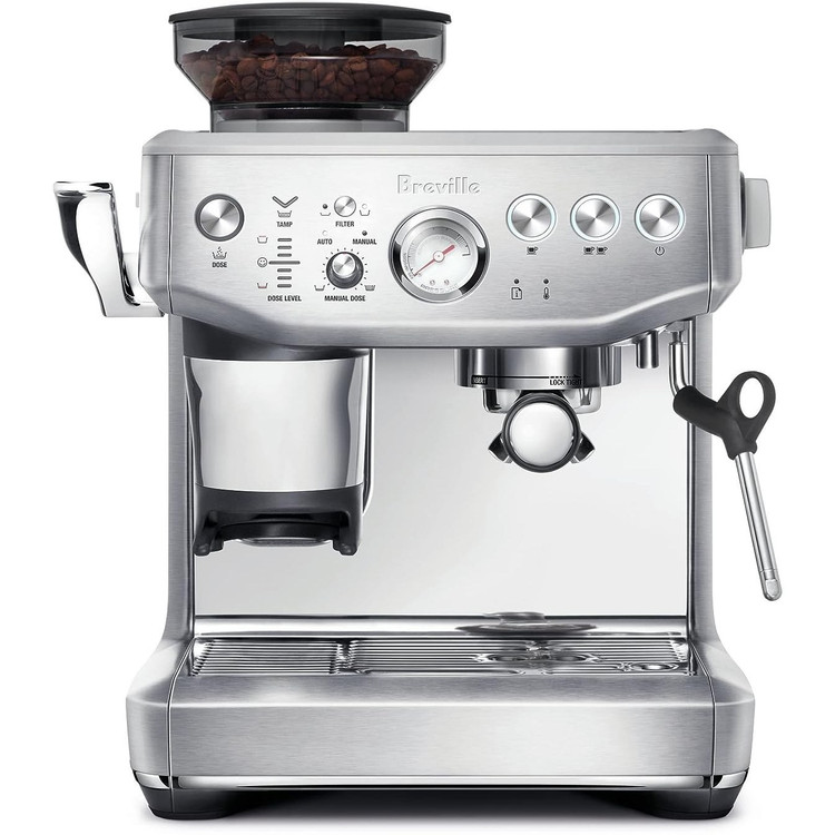 اسپرسو ساز برویل مدل BES 876 نیمه اتومات حرفه ای بسیار پر قدرت ساخته شده و دارای توان مصرفی 1850 وات و فشار بخار 15 بار می باشد و شما می توانید با استفاده از دانه و پودر قهوه انواع نوشیدنی های خوش طعم را آماده کنید. به علاوه اسپرسو ساز برویل تنها در 25 ثانیه آماده به کار می شود و دارای سینی گرم نگه دارنده فنجان و سینی چکه گیر می باشد مخزن آب و آسیاب قهوه