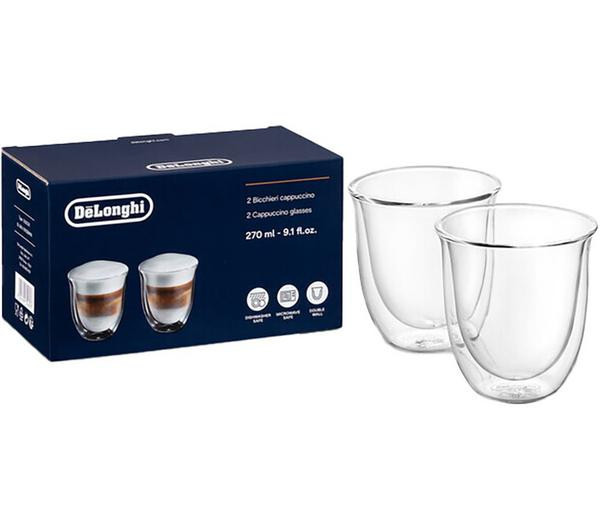 لیوان های حرارتی دو جداره کاپوچینو دلونگی، ستی از دو لیوان 190 میلی لیتری عرضه شده است. این لیوان های کاپوچینو عایق هستند و میتوانند برای لاته، کاپوچینو، قهوه، چای و تقریبا هر نوع نوشیدنی اعم از گرم یا سرد استفاده شوند.